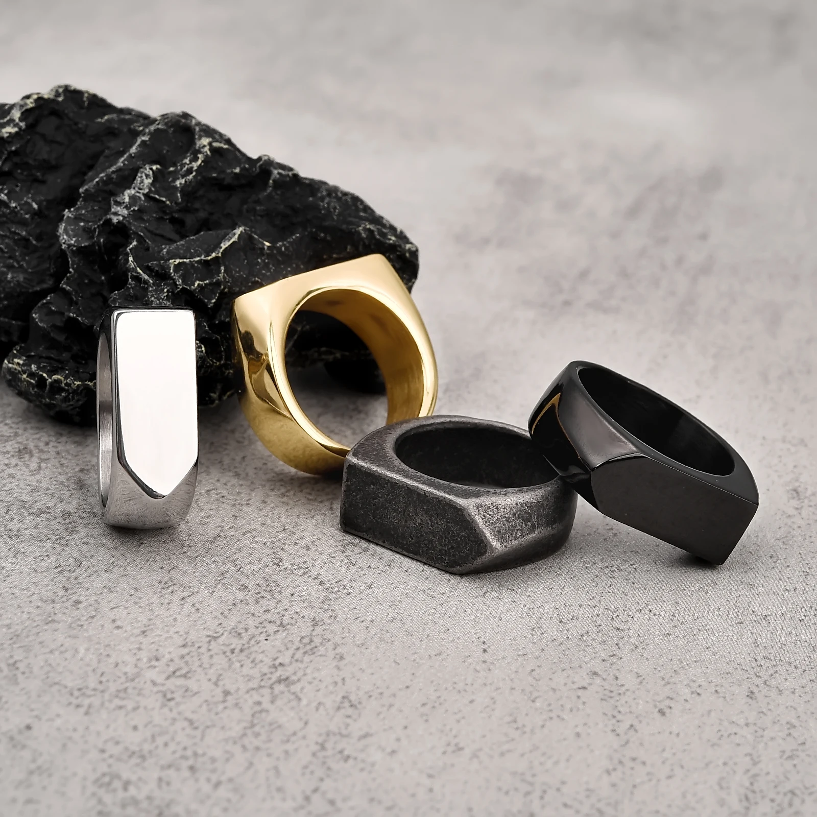 Кольцо мужское из гладкой нержавеющей стали, классическое ювелирное изделие с плоским верхом, чёрное, золотое, серебряное, 3 цвета