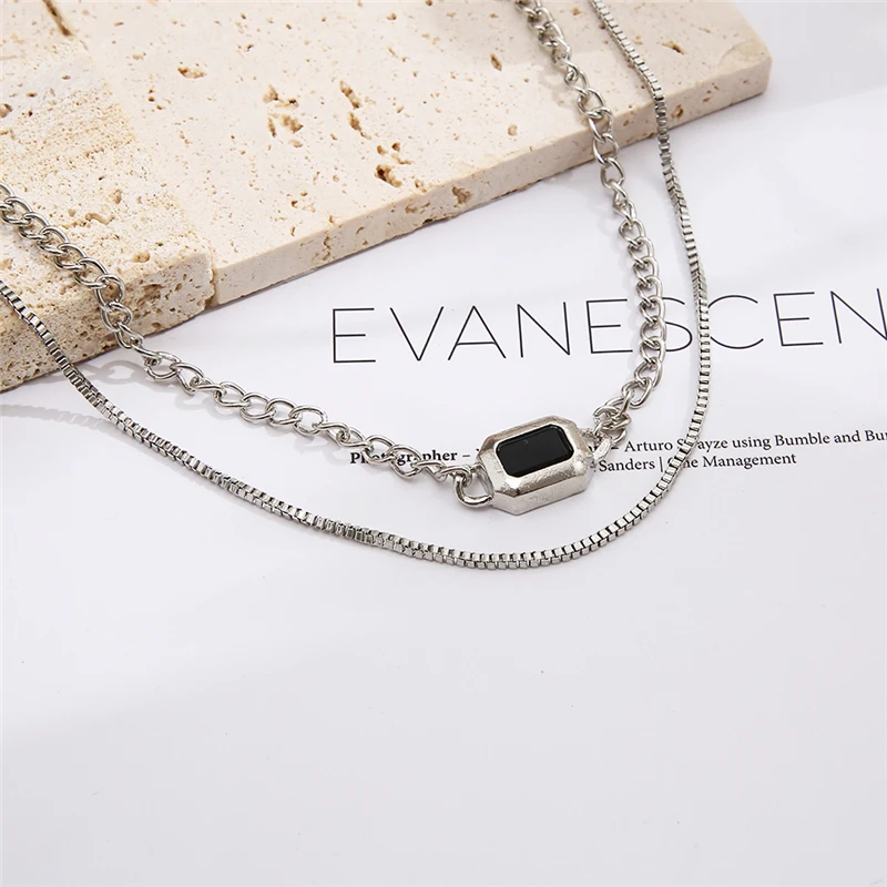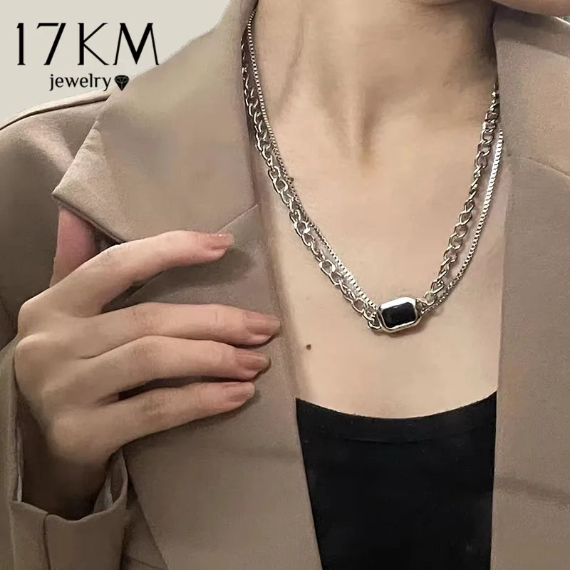 17KM модное посеребренное ожерелье-цепочка для женщин модное Двухслойное геометрическое искусственное ювелирное изделие в подарок