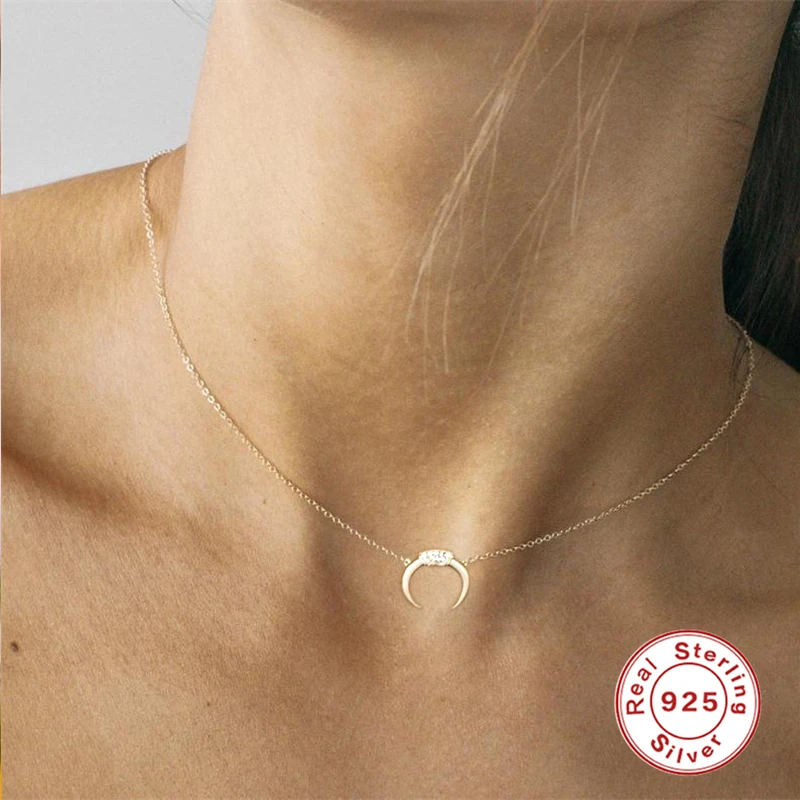 Автоклав 925 стерлингового серебра длинное полумесяц ожерелье для ж...