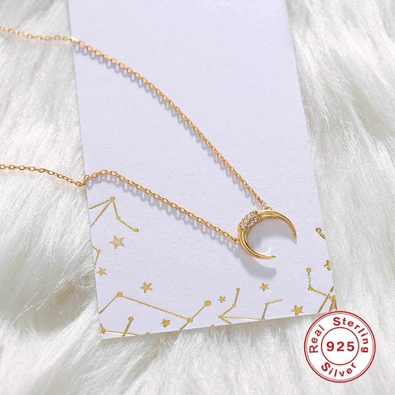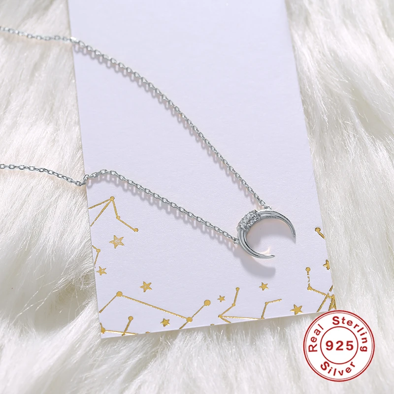Aide подвеска в форме Луны из стерлингового серебра 925 пробы ожерелье для женщин Хрустальная цепочка колье ожерелье ювелирные изделия воротник mujer