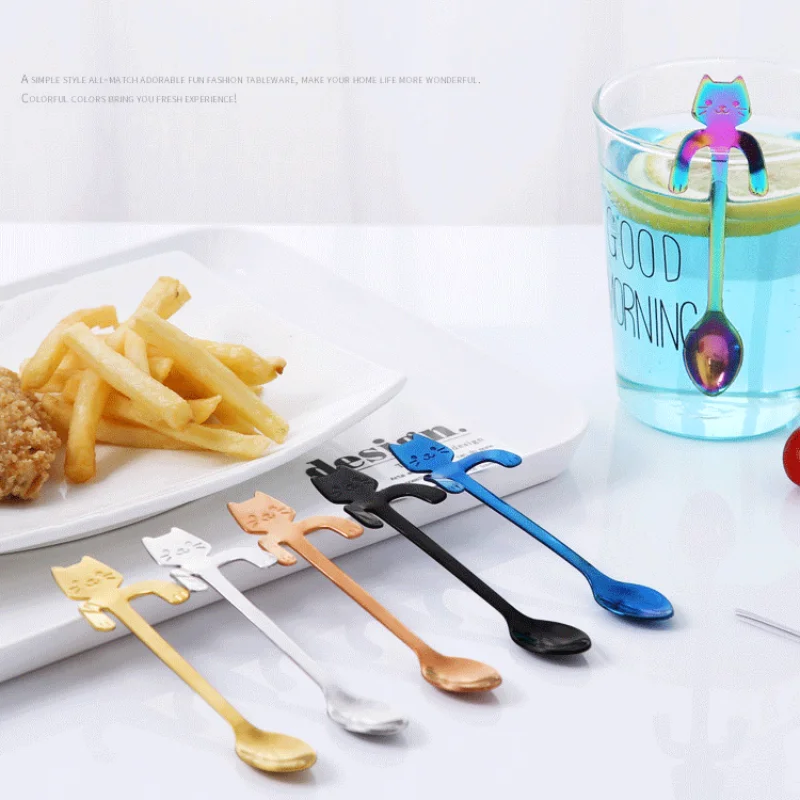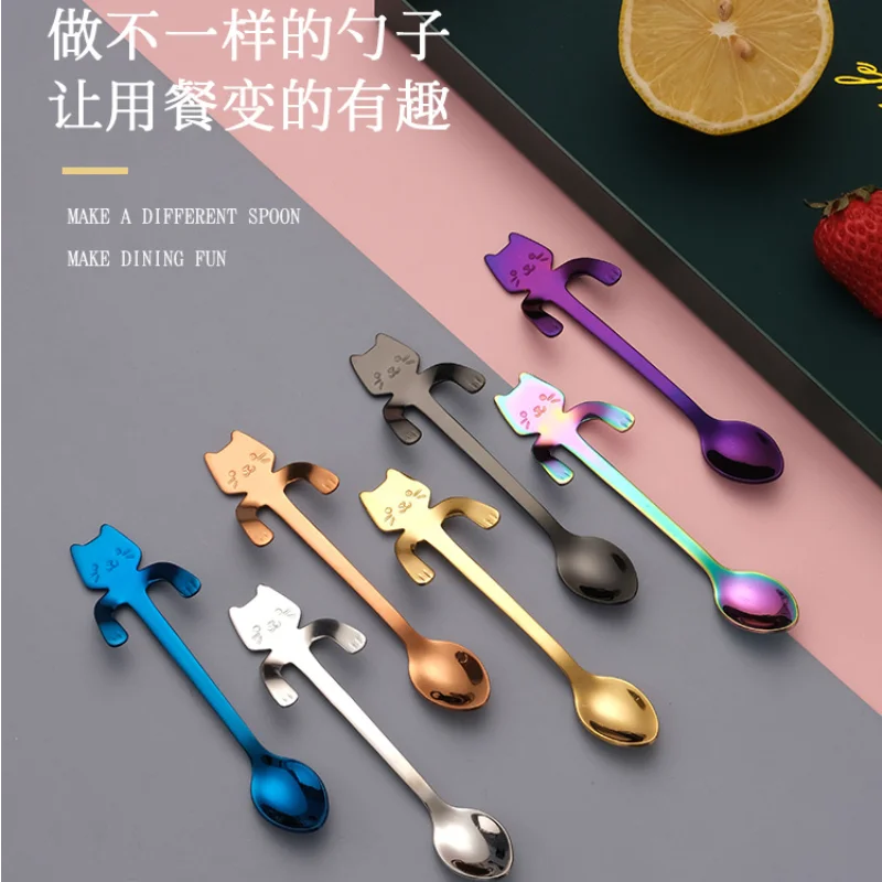 Кофейная ложка из нержавеющей стали, милая чайная ложка в форме кошки, десертная ложка для закуски, мороженое, столовая посуда, кухонные инструменты