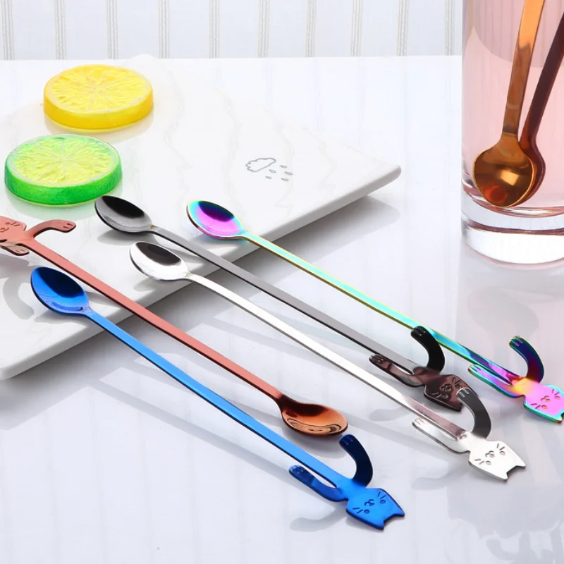 Кофейная ложка из нержавеющей стали, милая ложка в форме кошки, ложка для десерта, ложка для мороженого, мини-ложки, посуда, кухонные инструменты