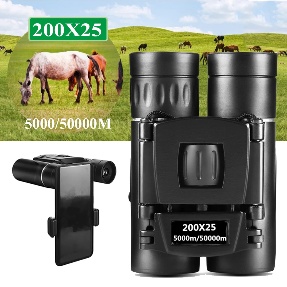 Портативный Мини бинокль 200X25, мощный профессиональный телескоп с дальним радиусом действия, для охоты и кемпинга с низсветильник щением