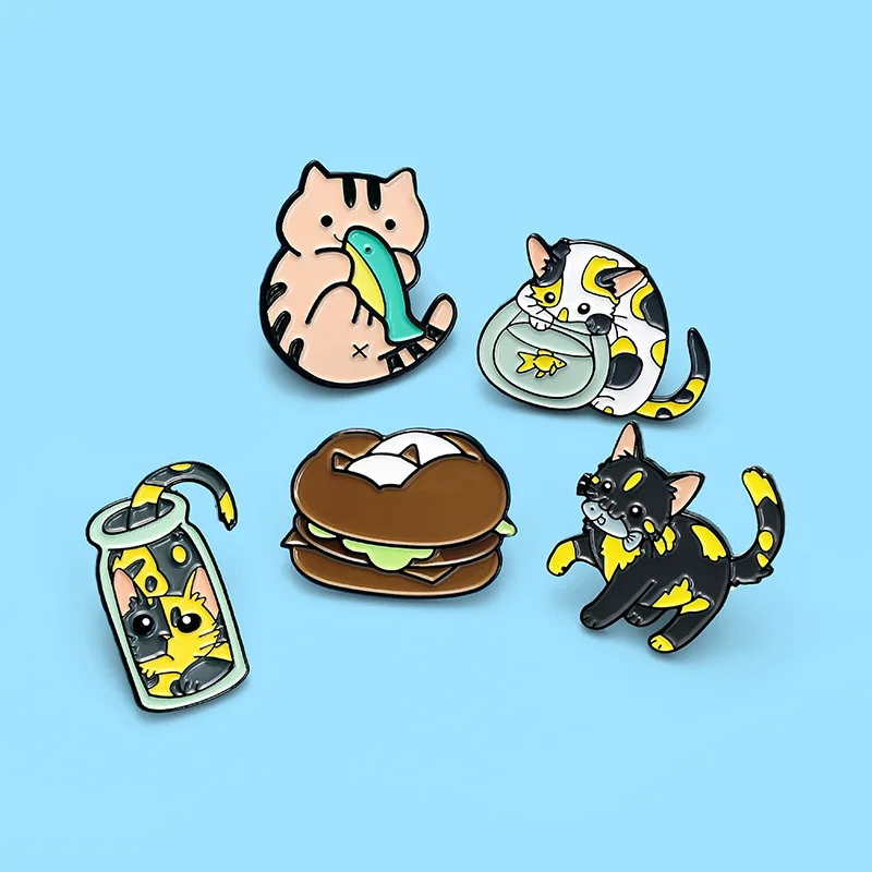 Броши из серии мультяшных животных, эмалированные значки с милым черным котом, Значки для рюкзака, одежда, булавка для лацкана, ювелирные изделия, подарки для детей, оптовая продажа