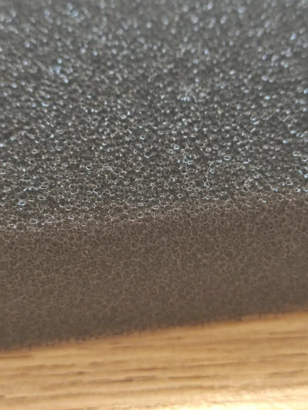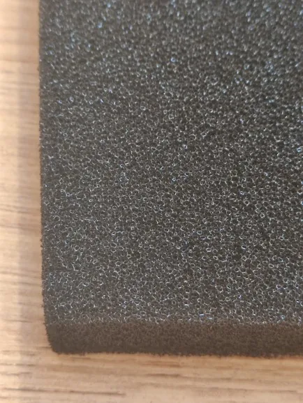Не совсем соответствует заявленной плотности. На свет не просвечивается. Посторонних запахов нет. Не уверенна, что смогу использовать как фильтр пылесоса, уж очень слабая плотность для 50 ppi. Од ин плюс - продавец упаковывает хорошо, поролон не помялся.