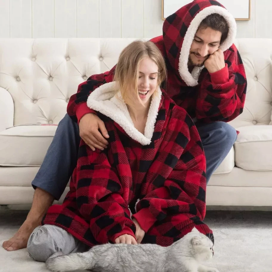 Женское одеяло с капюшоном, зимнее Флисовое одеяло с рукавами