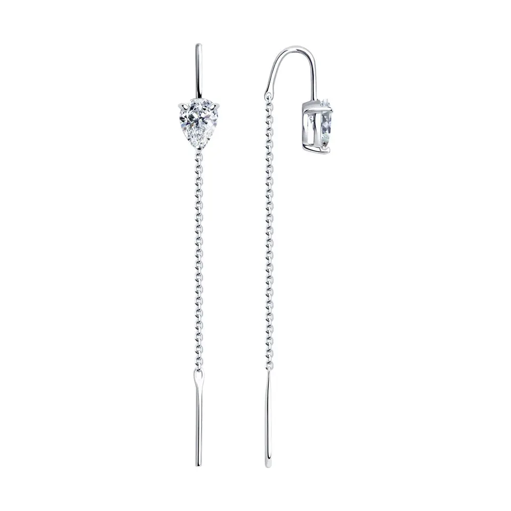 Серьги длинные SOKOLOV из серебра с фианитами, Серебро, 925, Женски...