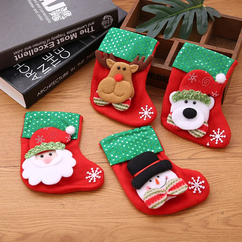 Носки с надписью "Merry Christmas", красные снежинки, рождественские чулки, украшение для елки с подвеской, новогодние подарочные пакеты для конфет для детей, носки для собак, кошек