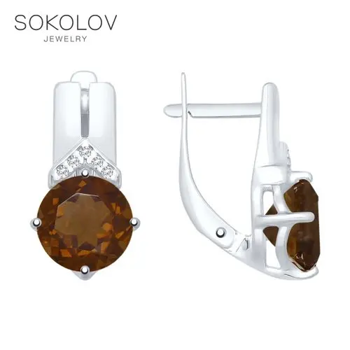 Серьги SOKOLOV из серебра с раухтопазами и фианитами, Серебро, 925, Женские, Серьги 2022 тренд, Оригинальная продукция