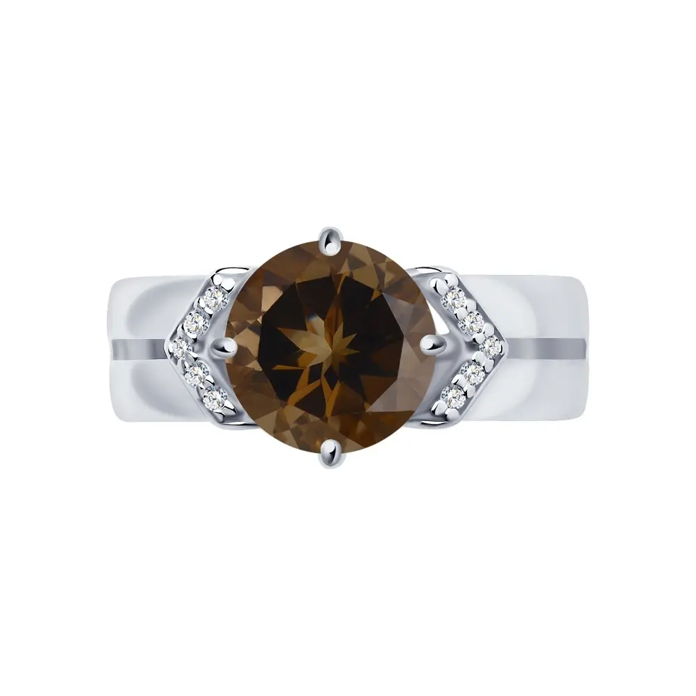 Кольцо SOKOLOV из серебра с раухтопазом и фианитами, Серебро, 925, Женское, Оригинальная продукция
