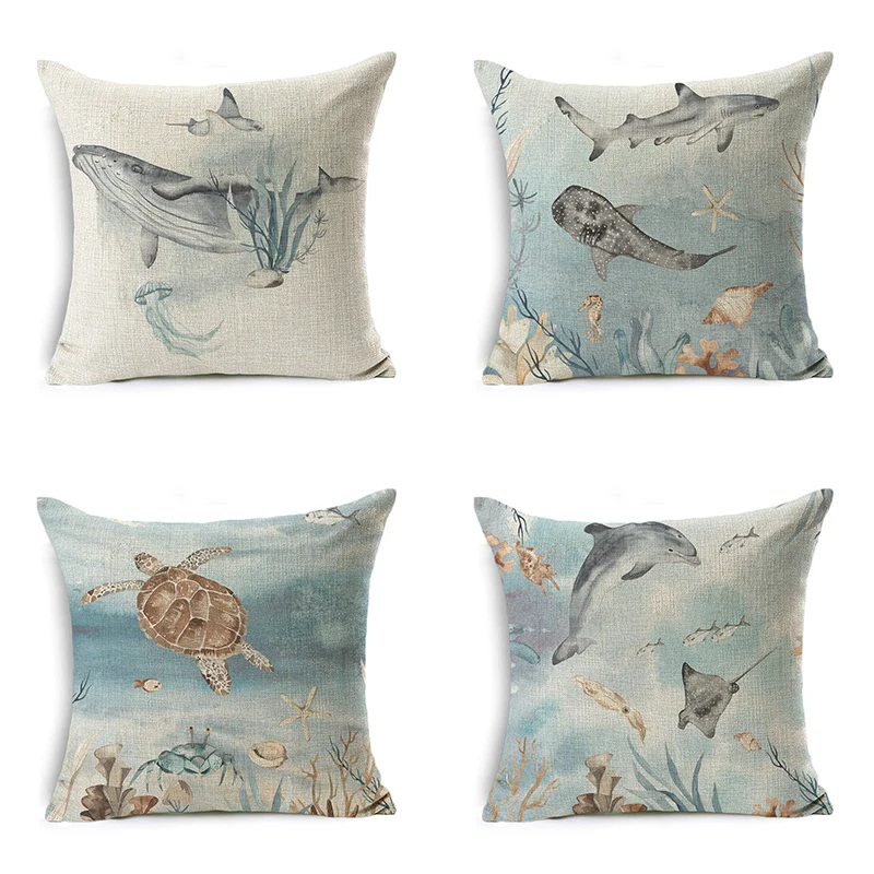 Наволочка Морская жизнь наволочка Кит Рыба декоративный океан льняная Подушка Чехол для автомобиля Диван Декор Наволочка Подушка Домашние подушки 45 см x 45 см