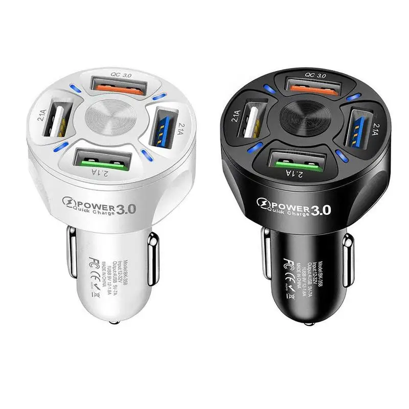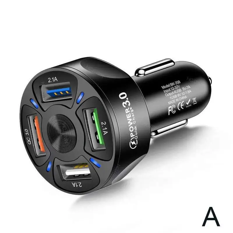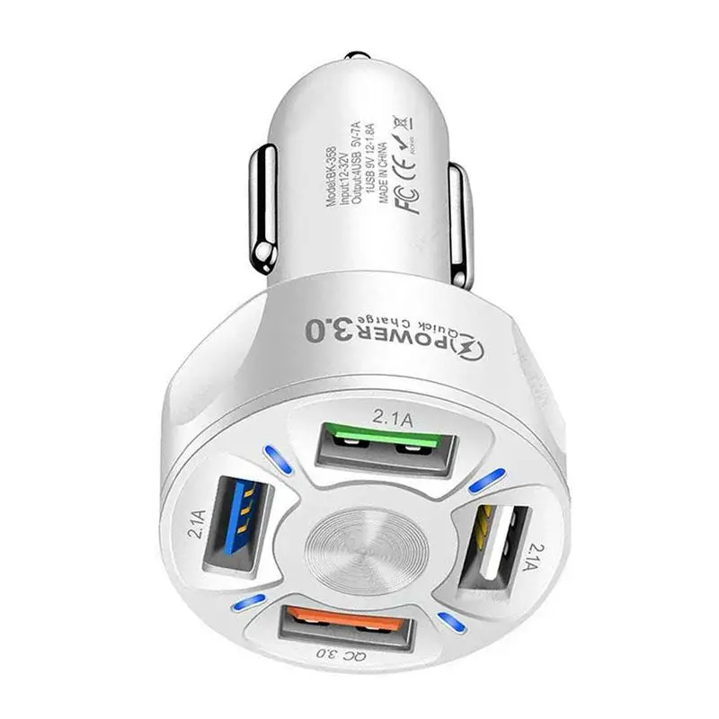 Технические характеристики:1. Цвет: черный, белый2. Материал: АБС-пластик и поликарбонат огнеупорный материал3. Вход: 12-32 В4. Интерфейс: USB5. Выход: 4USB 5V-7AUSB1 : 9V-2A 5V-3AUSB2 : 9V 12V--1.8A 5v-2.1AUSB3 : 9V 12V--1.8A 5v-2.1AUSB4 : 9V 12V--1.8A 5v-2.1A (Текущая плата 3A, общий ток 7A)6. Рабочая температура: от 0 до 50 сОсобенности:1. 100% новый и высокое качество2. С 4 портами USB, быстрая зарядка, безопасная и стабильная. Также Стабильная и прочная постоянная зарядка во время вождения.3. Светильник со световым дисплеем, мягкий синий светильник с индикацией мощности. Когда устройство заряжается, светодиодный дисплей, чтобы лучше найти устройство.4. С модернизированным чипом, многократная защита зарядки, не повреждает устройство5. Интеллектуальная шунтирующая зарядка с 4 отверстиями, стабильная зарядка, скорость до 60%6. Совместимость с различными моделями, от 12 до 32 В Входное напряжение поддерживает основные транспортные средства на рынке7. Пряжки с обеих сторон прочные, зарядка стабильная и выход не отпадает8. Широко совместим9. Портативный и мини-дизайн, он не будет занимать слишком много местаПосылка включает в себя:1 х USB адаптер быстрого зарядного устройства