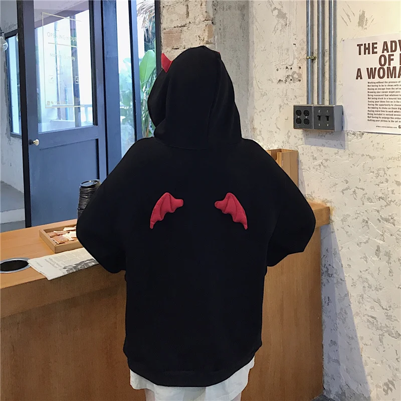 Женская толстовка с капюшоном, Готическая толстовка, большой черный Свободный свитшот, Харадзюку kawasi, фонарь