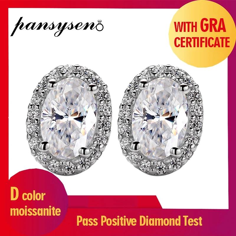 PANSYSEN 100% 925 стерлингового серебра 2 шт. 0.5ct D Цвет овальные настоящий Муассанит свадебные серьги-гвоздики для женщин, хорошее ювелирное изделие