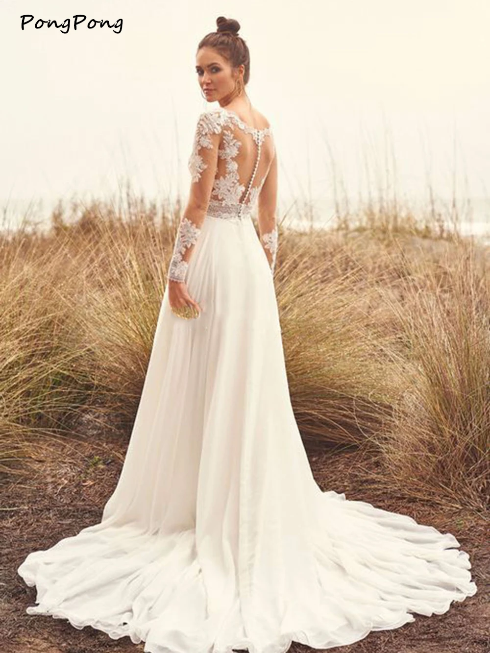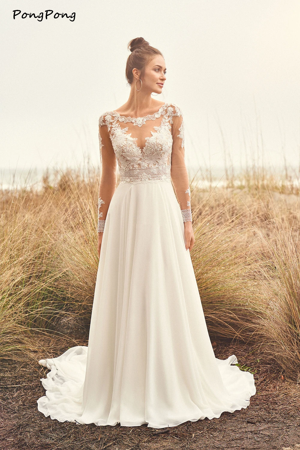 Женское шифоновое платье с длинным рукавом, Элегантное свадебное платье с круглым вырезом и аппликацией, лето 2021