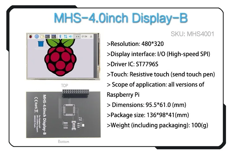 MHS высокоскоростной серии SPI сенсорный цветной дисплей 3,2 дюйма3,5 дюйма4,0 дюйма для raspberry PI