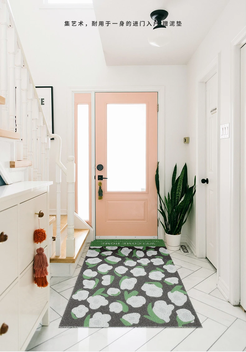 Скандинавский коврик из ПВХ с шелковой петлей на заказ, домашний Шелковый коврик, нескользящий коврик для входной двери, коврик для прихожей