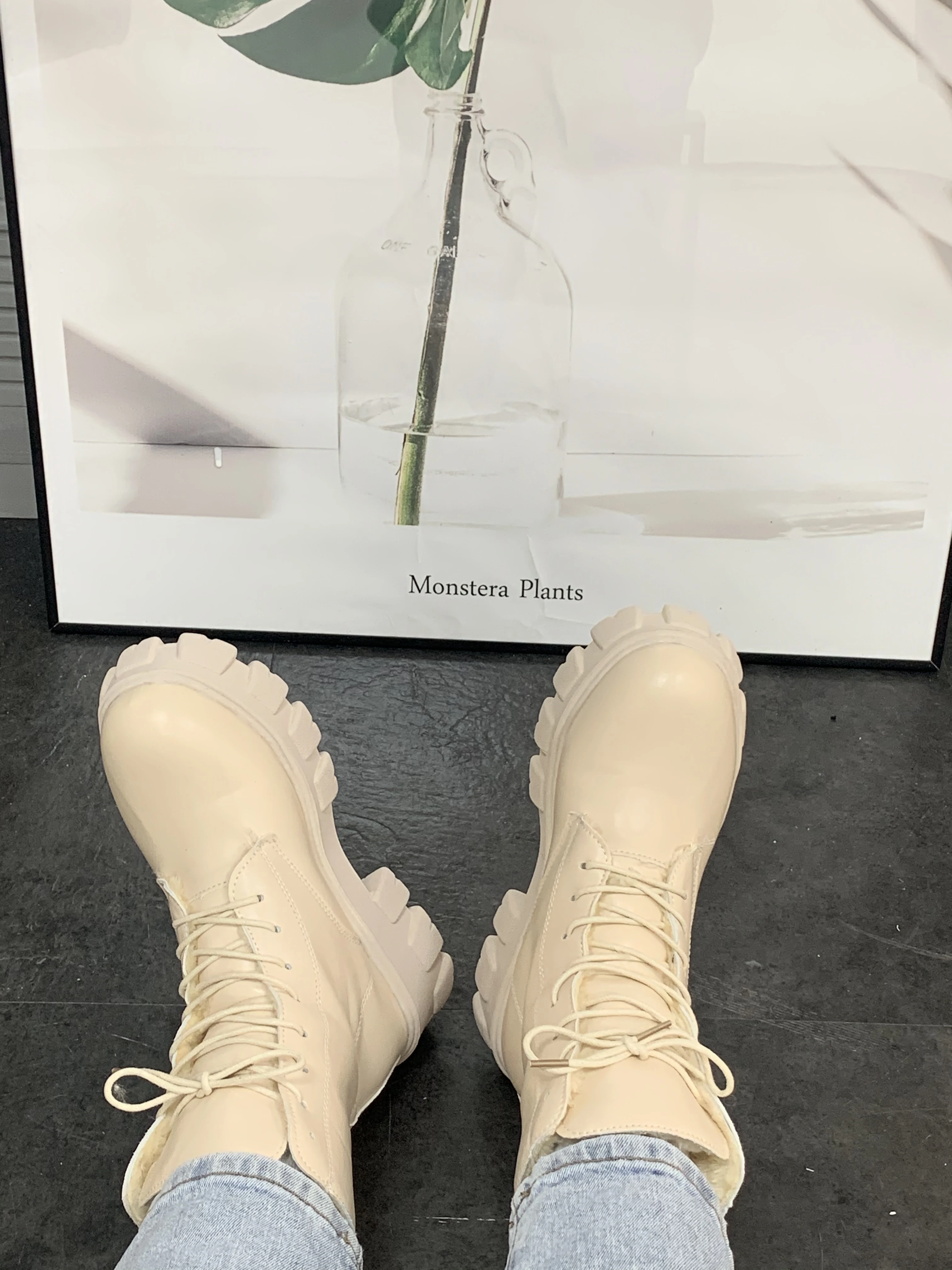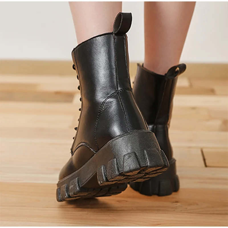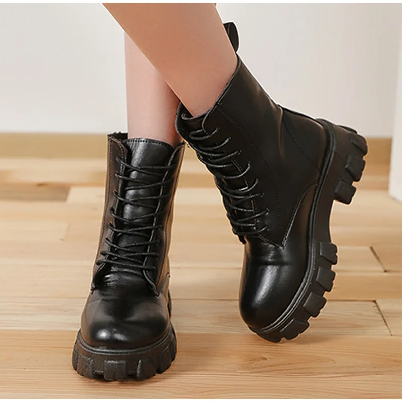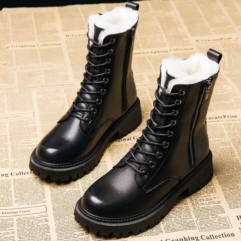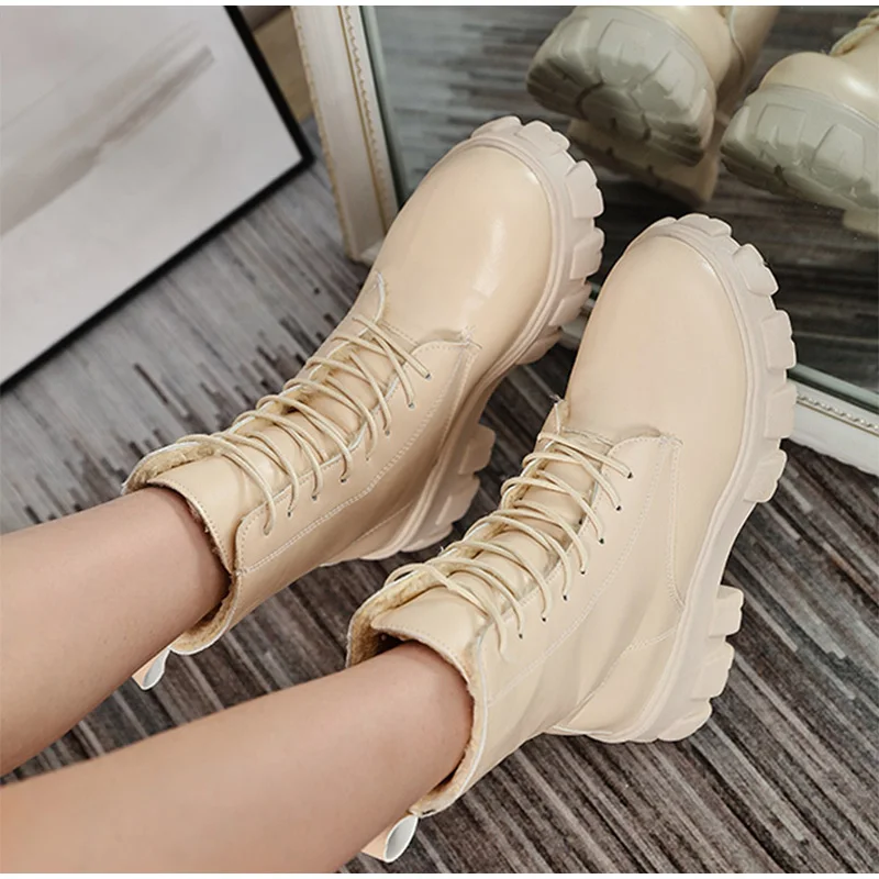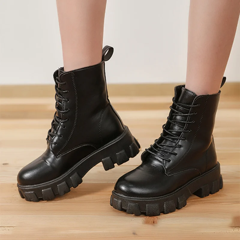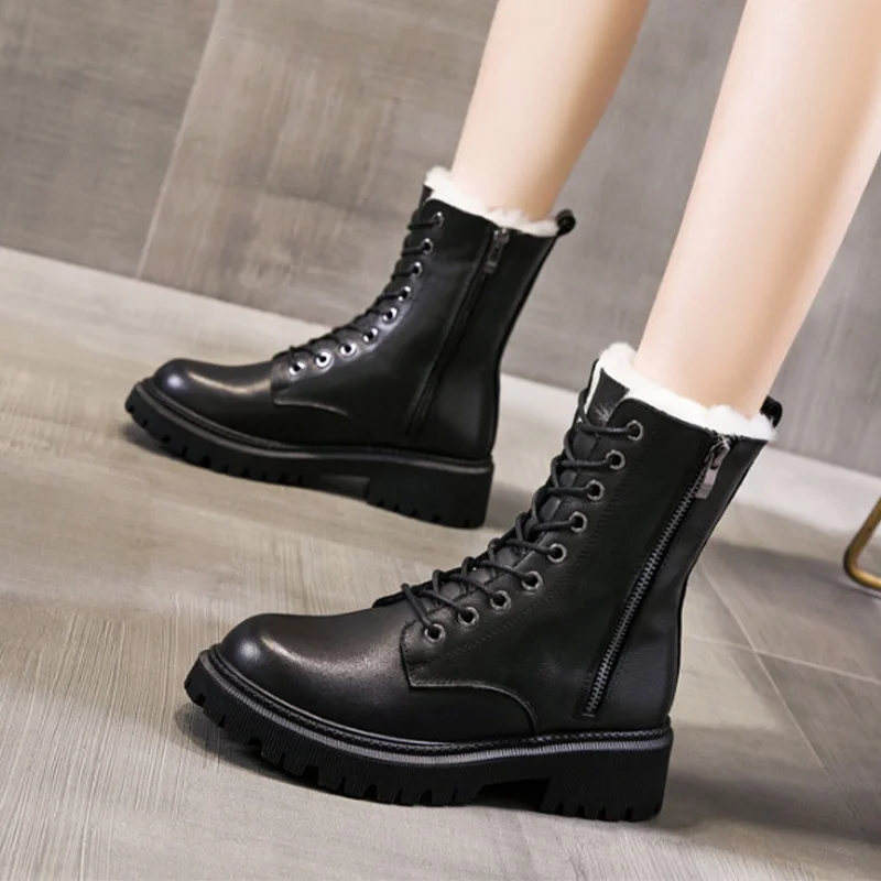 Женские ботинки MCCKLE, зимние, Осенние, теплые, плюшевые, женская обувь, кожаные, на шнуровке, модные, женские, на платформе, короткие ботинки, женские ботильоны