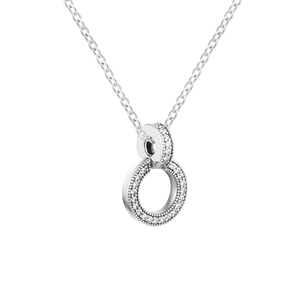 Женское ожерелье из серебра 2021 пробы, с кулоном в виде двух колец