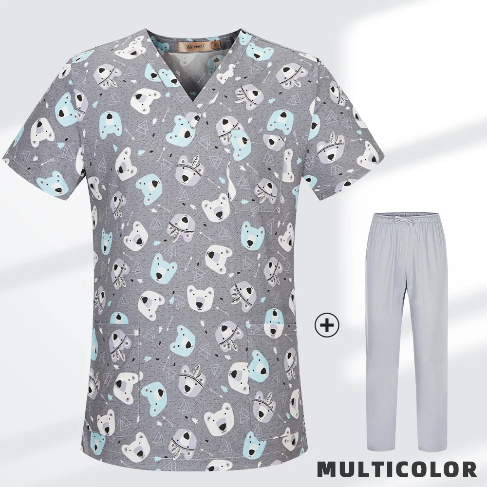 Scrubs tops Cute Cartoon printing Kindergarten teacher workwear pet...