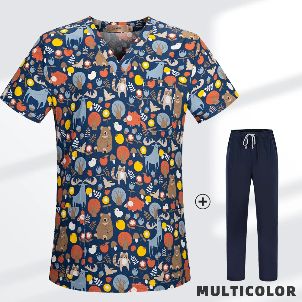 Новая разноцветная хлопковая Униформа с принтом животных и цветов, ...
