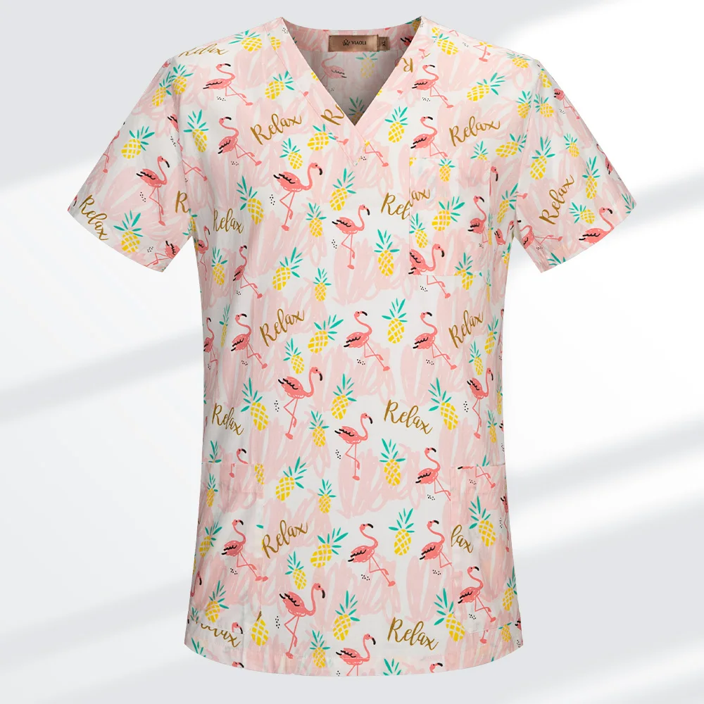 Хирургические Топы Униформа женская, с коротким рукавом, с принтом