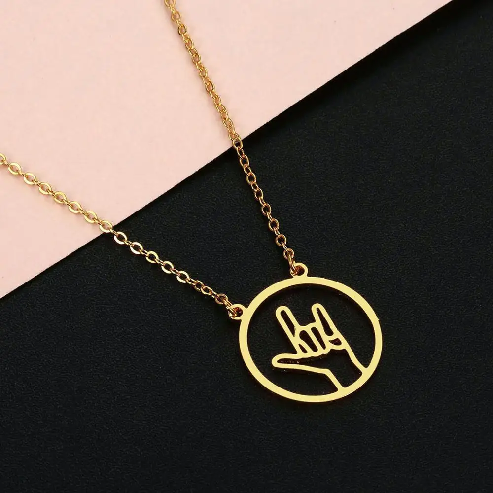 LUTAKU минимальное круглое ожерелье с подвеской для женщин ожерелье из нержавеющей стали рок рулон жест руки хип-хоп вывеска языковое ожерелье