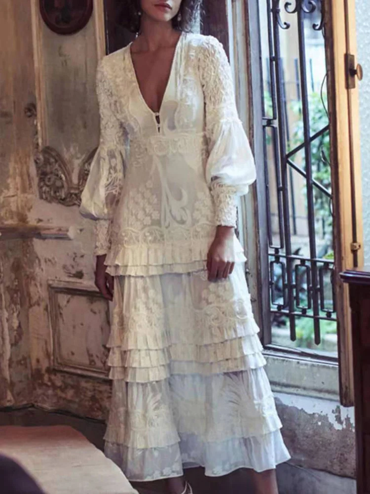 Женское платье с рюшами VGH, Повседневное платье с V-образным вырезом и рукавами-фонариками, платье с высокой талией, осень 2022