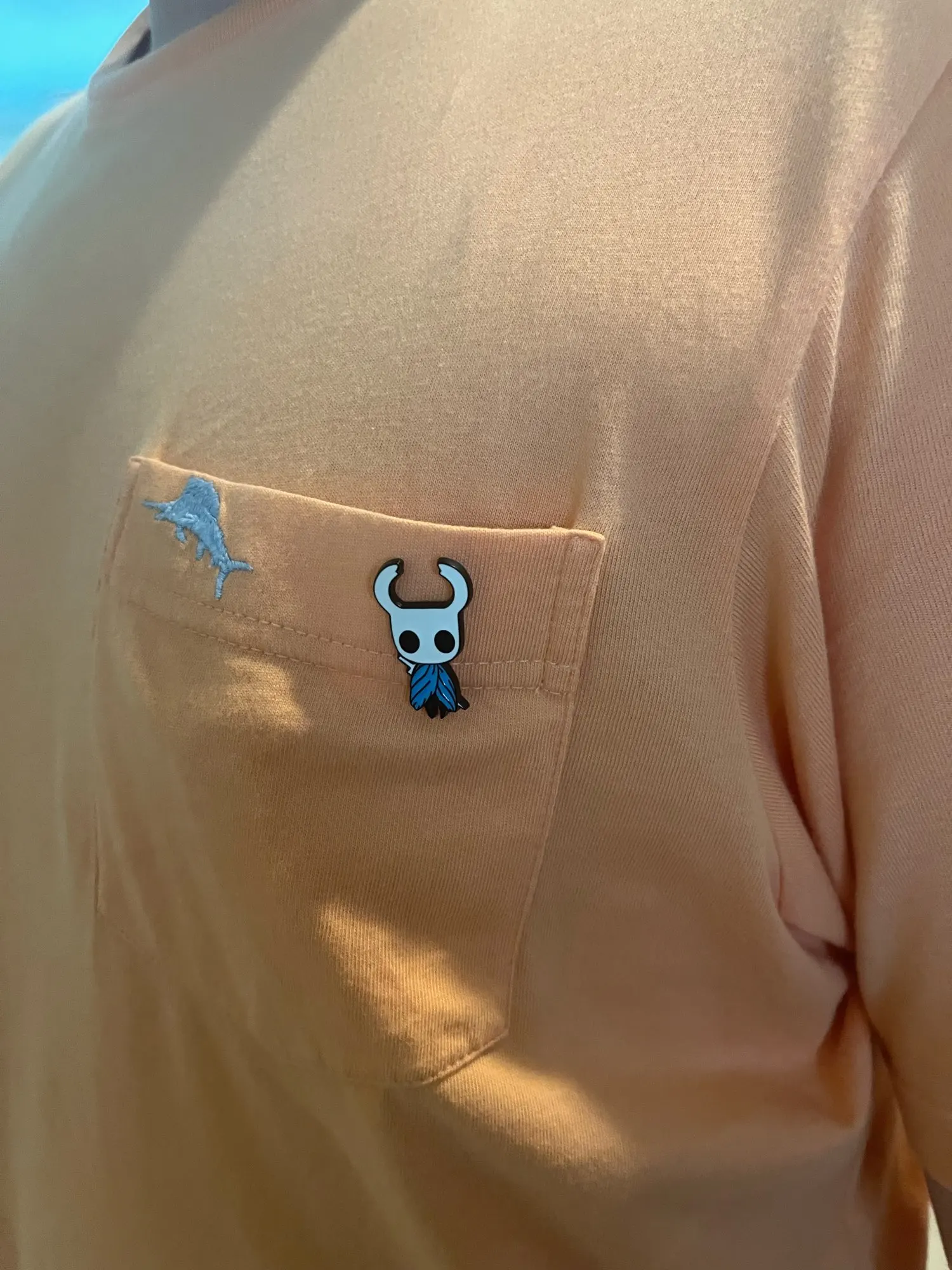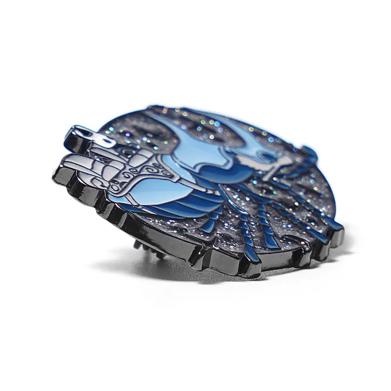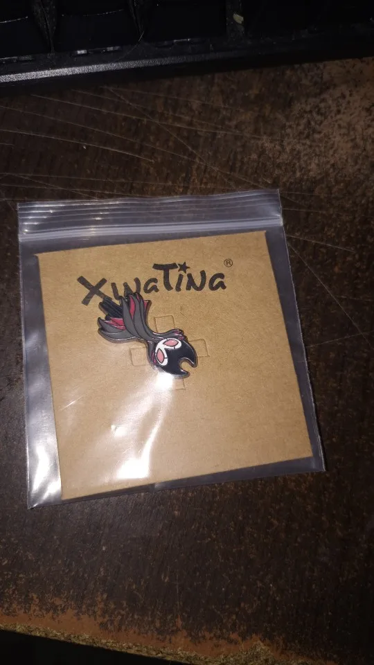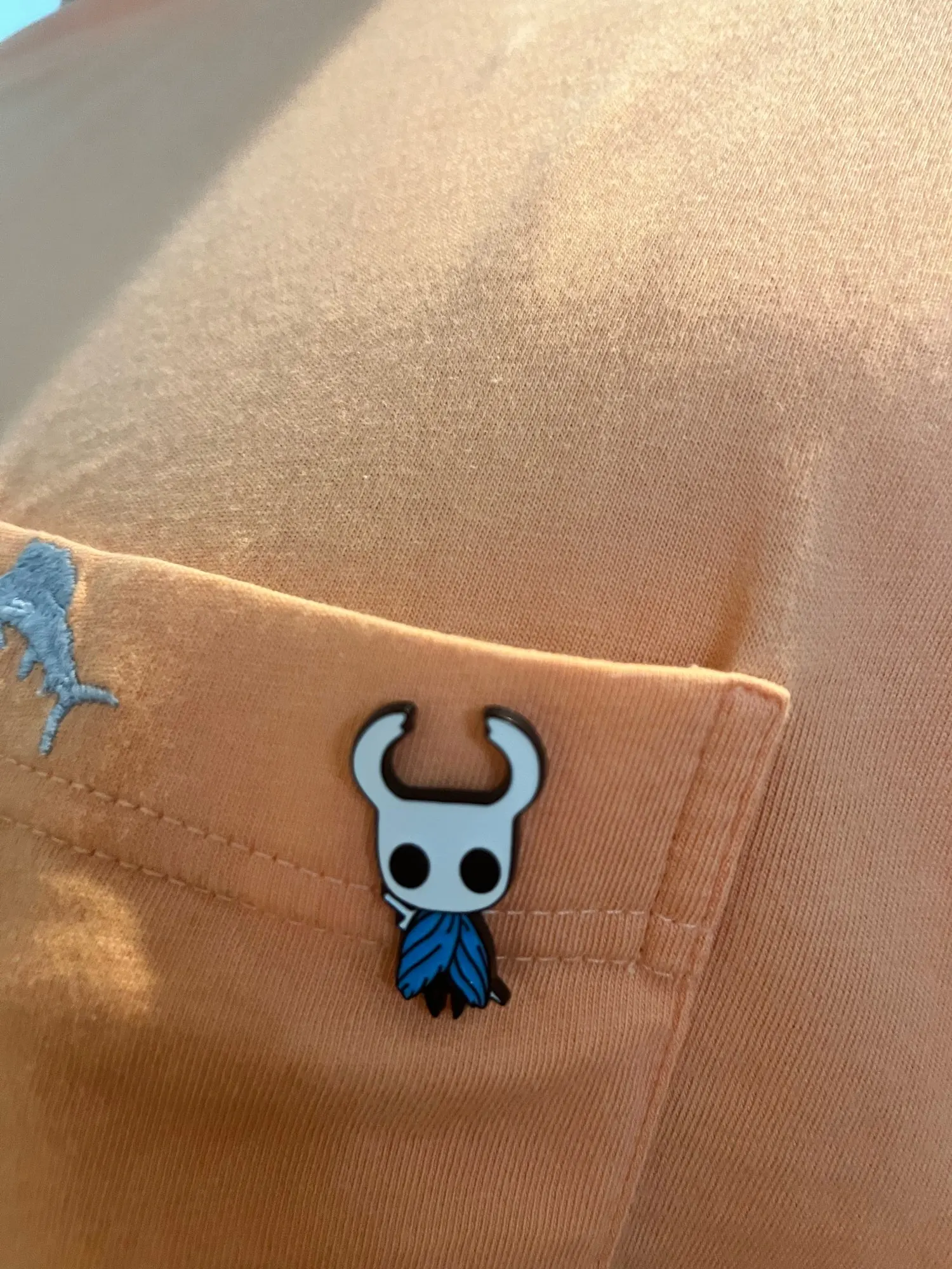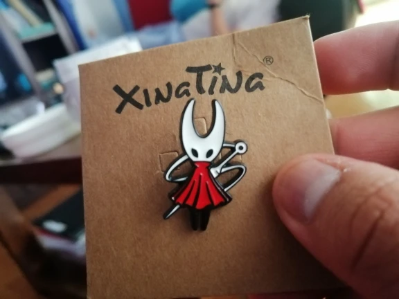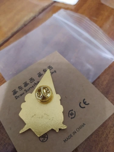 Штифт прибыл неповрежденным и доставка была относительно быстрой. Качество разумное, он красиво детализирован и цвета хорошо разделены. Моя единственная небольшая жалоба касается синего цвета, который кажется немного ярче, чем на картинке. Клатч крепкий и крепкий даже на толстой ткани.