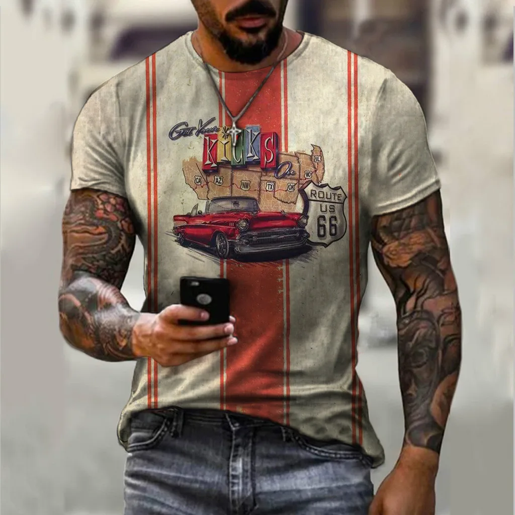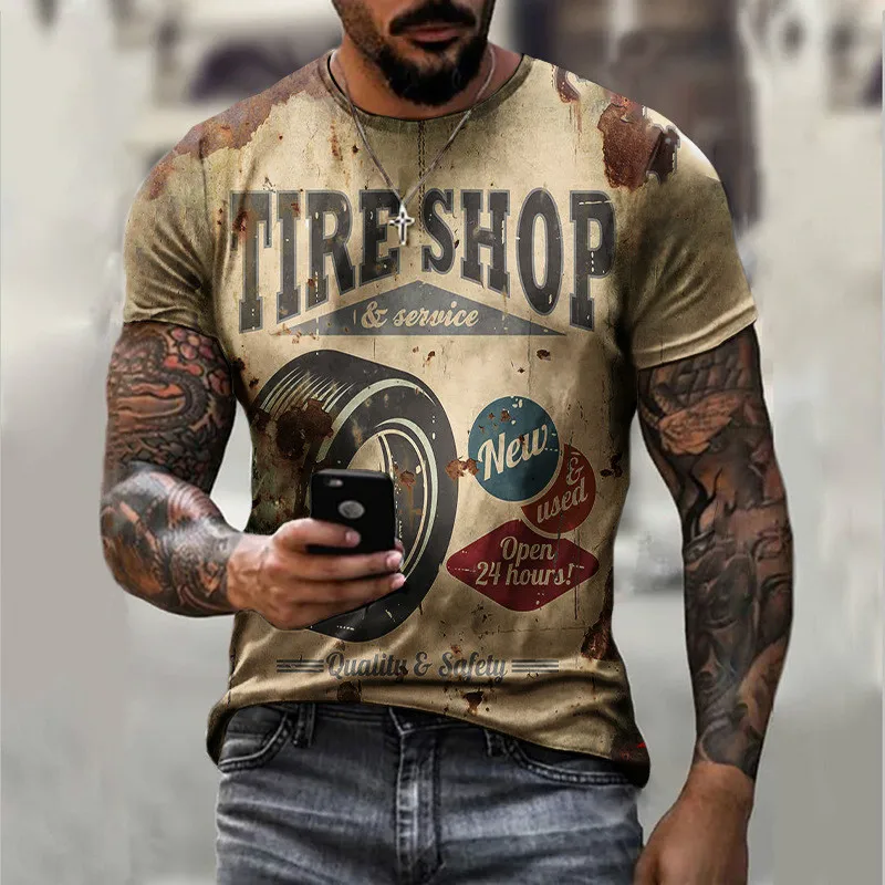 Мужская футболка с коротким рукавом Европейская и американская серия Повседневная модная футболка с круглым вырезом и 3D принтом автомобильных шин