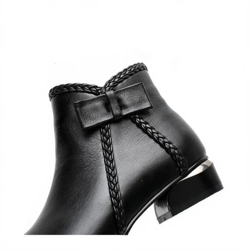 Короткие женские ботинки с украшением на пряжке, Зимние Теплые ботильоны на толстом каблуке с острым носком, повседневные Элегантные женские ботинки, обувь размеров 43