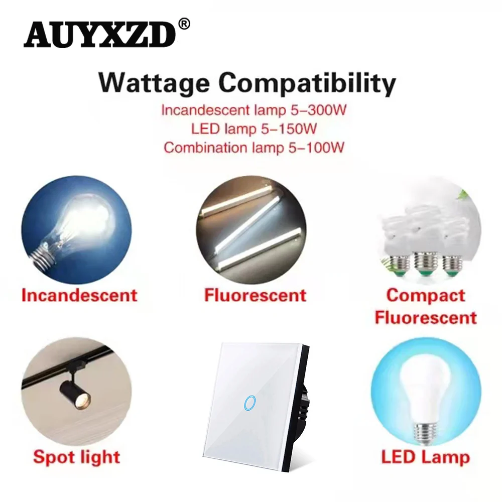 Сенсорный высветодиодный ель AUYXZD европейского стандарта, Светодиодная панель из хрустального стекла, настенный выключатель света, 123 клавиши, 1 канал, 100-240 В переменного тока, светодиодные сенсорные переключатели