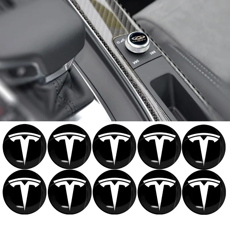 10 шт. Новинка 14 мм черная круглая наклейка с автомобильным ЗНАКОМ форма наклейка для Tesla model s x 3 2021 катушка bonina k80 автомобильные аксессуары
