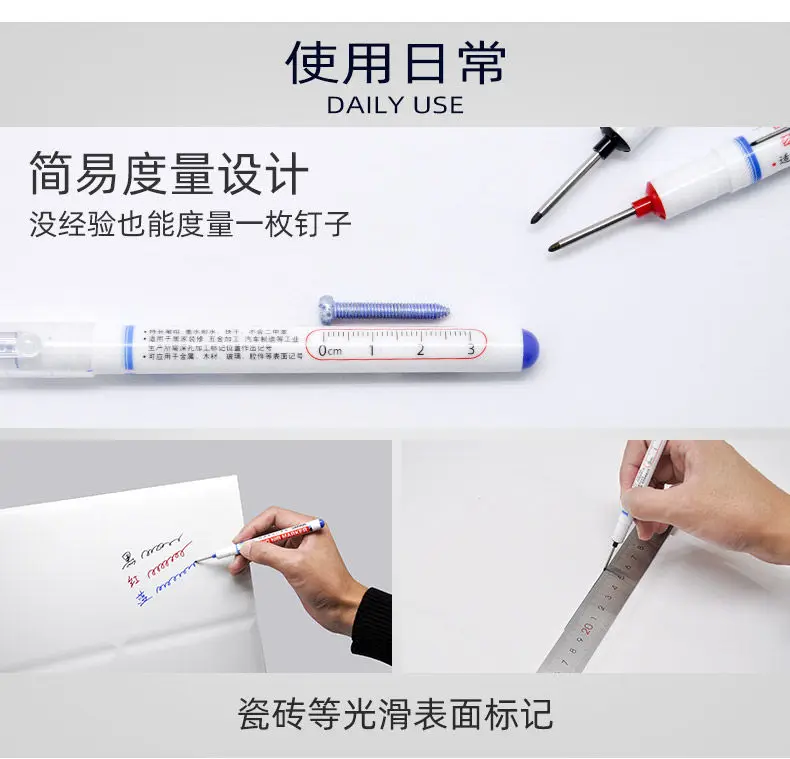 Маркеры с длинной головкой для декора ванной и деревообработки, многофункциональные маркеры с глубоким отверстием, ручка с краснымичернымисиними чернилами PUO88