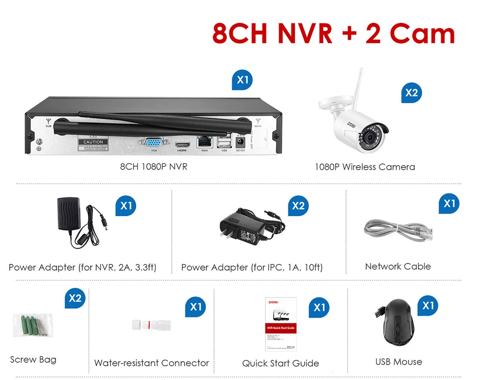 ZOSI Plug Play беспроводная CCTV камера система 2K 3MP H.265 + 8-к...