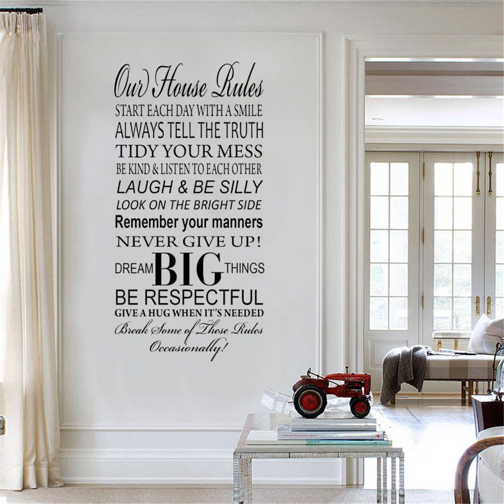 Наклейка на стену с надписью Семейные правила для дома, домашний декор для гостиной, спальни, виниловая роспись Revocable DW21074