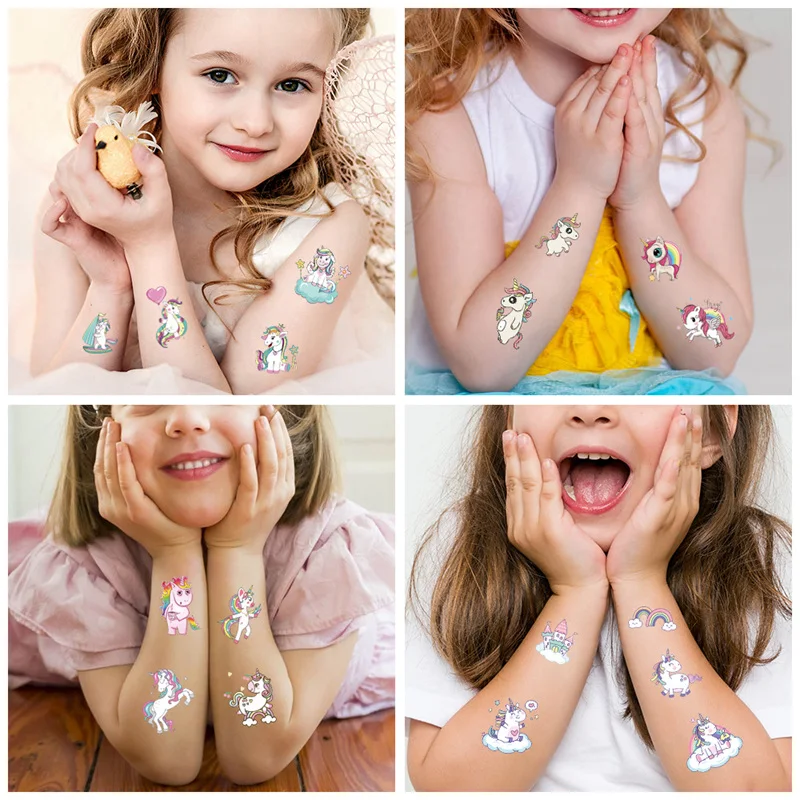 10 шт.лот Мультяшные тату-наклейки, детские руки, руки, единорог, временные искусственные татуировки, украшения для детского дня рождения, боди-арт своими руками