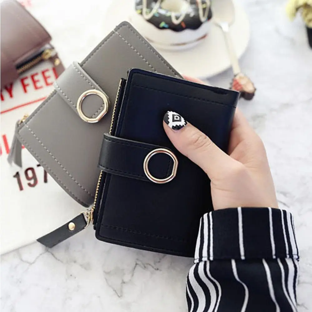 Женские кошельки, Маленький модный кошелек из искусственной кожи, дамская сумочка для карт с застежкой-молнией и кольцом, клатч 2022, Женский кошелек, кошелек с зажимом для денег