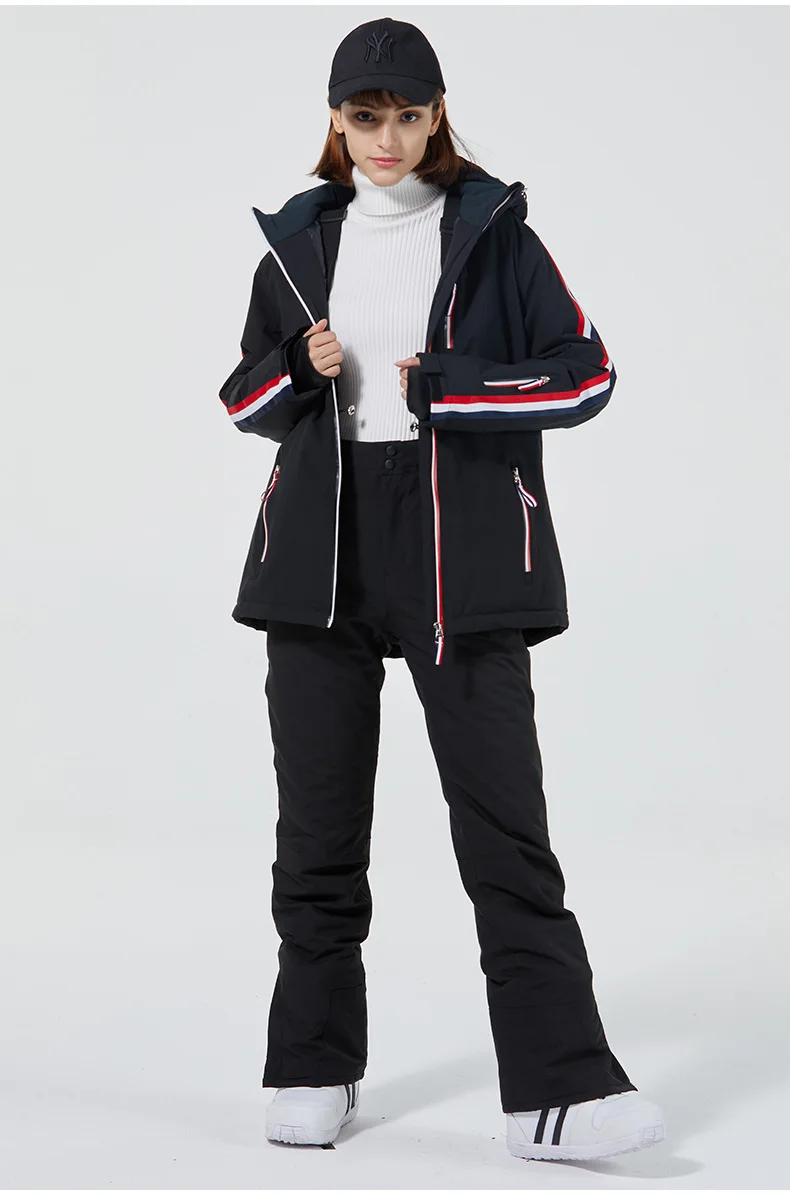 Женский костюм для снега и сноуборда, черная Водонепроницаемая зимн...