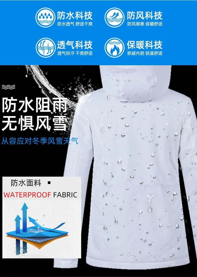 Новый мужской и женский белый костюм, зимний уличный Одноместный и двойной теплый спортивный костюм, дышащие лыжные брюки и лыжный костюм, костюм для пары