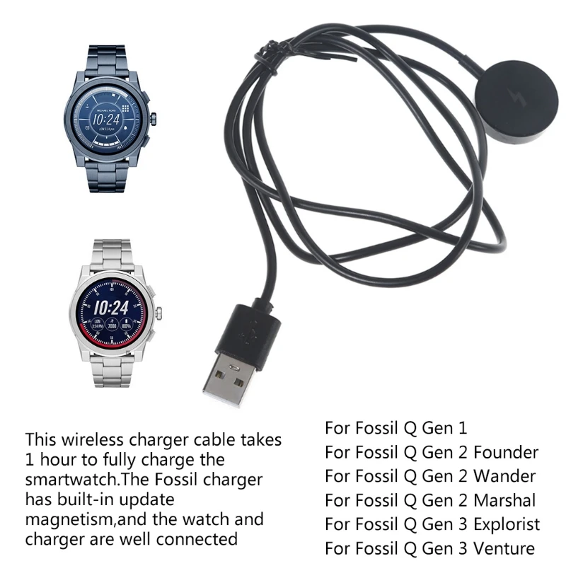 USB Беспроводная зарядка, мини магнитное зарядное устройство, док-станция, адаптер питания, кабель подходит для Fossil Q Gen 1 2 3, спортивные Смарт-часы