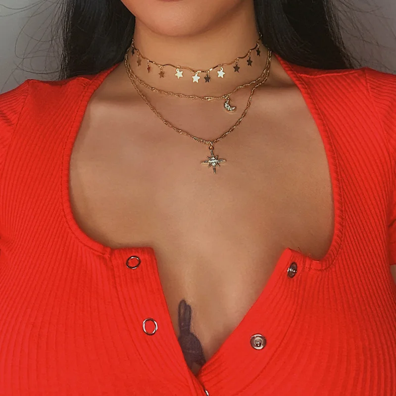 Женское многослойное ожерелье в стиле панк, золотистое винтажное ожерелье со змеиным плетением, богемная цепочка с подвеской, колье-чокер, ювелирные изделия, свадебные подарки, 2021