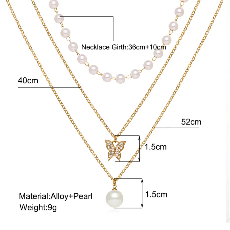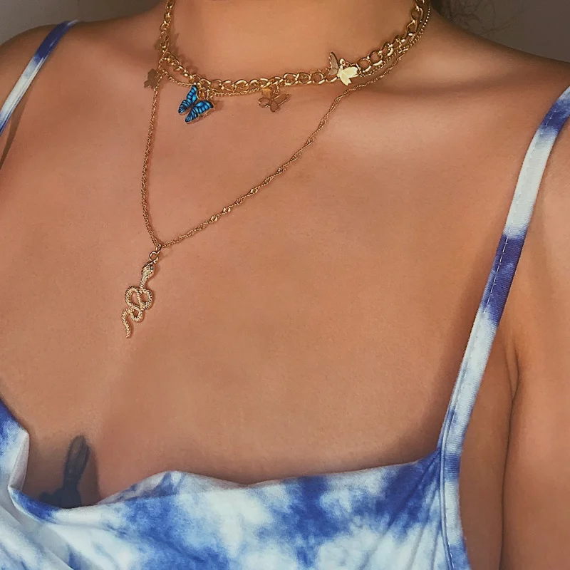 Подвеска-бабочка женская, золотая цепочка многослойная, цепочка-чок...