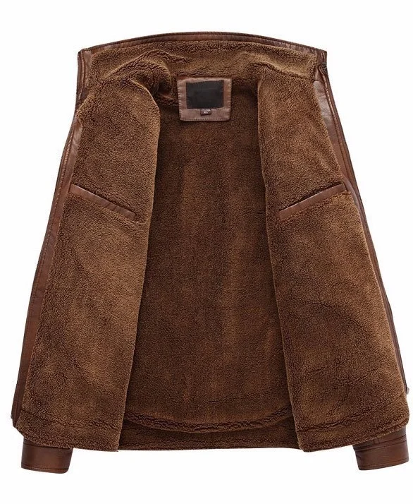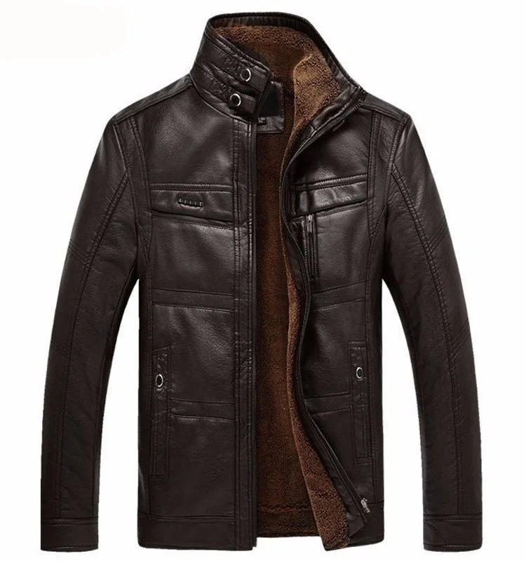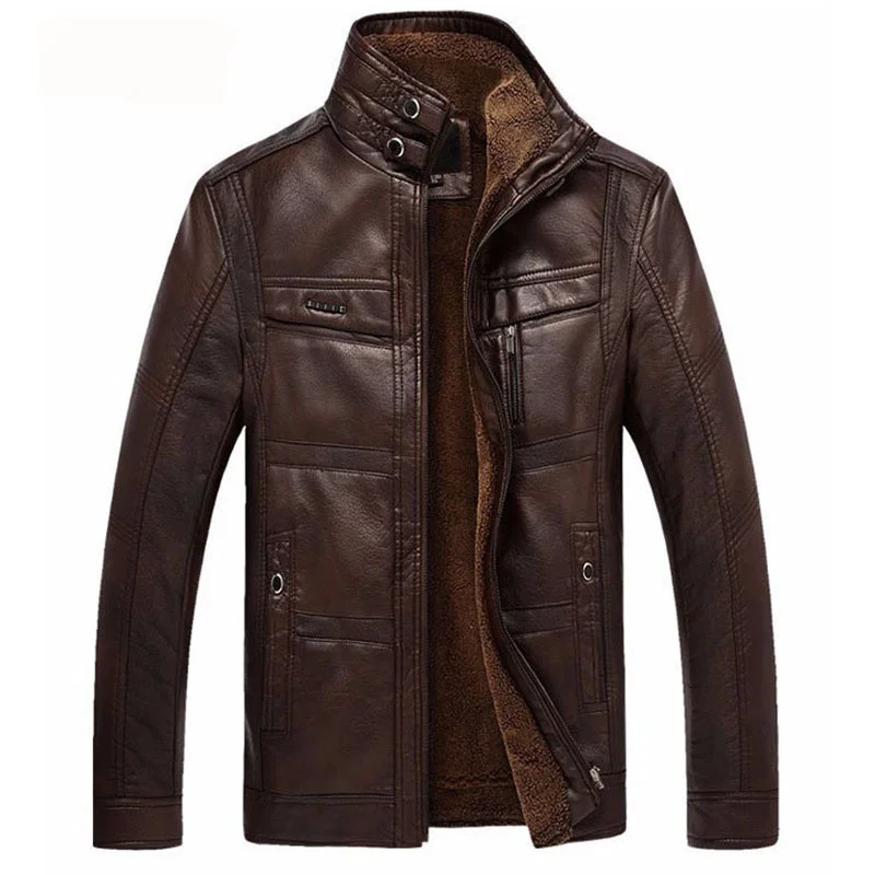 Новинка 2022, зимняя одежда, мужская кожаная куртка, высококачественное однотонное кожаное флисовое теплое приталенное пальто с воротником-стойкой, 3 цвета s