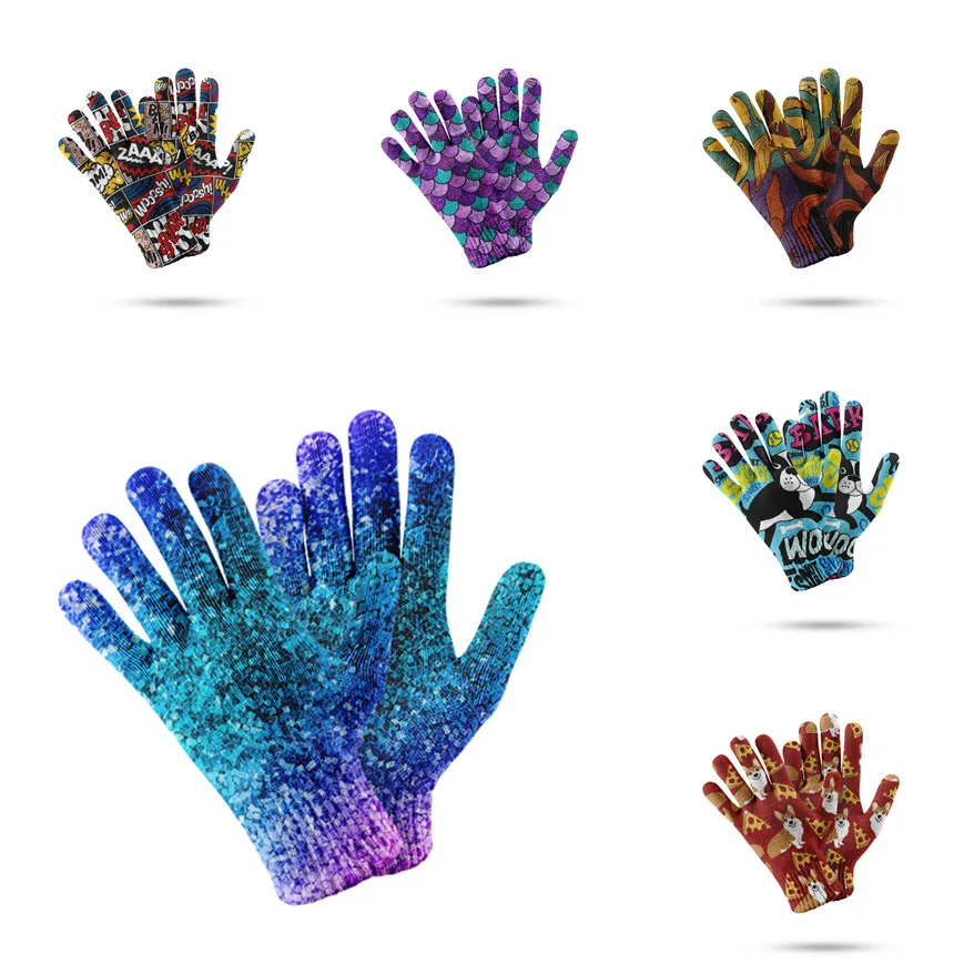 Модные вязаные перчатки с пятью пальцами, женские цветные зимние варежки для сенсорного экрана, мужские перчатки для велоспорта и лыжного спорта