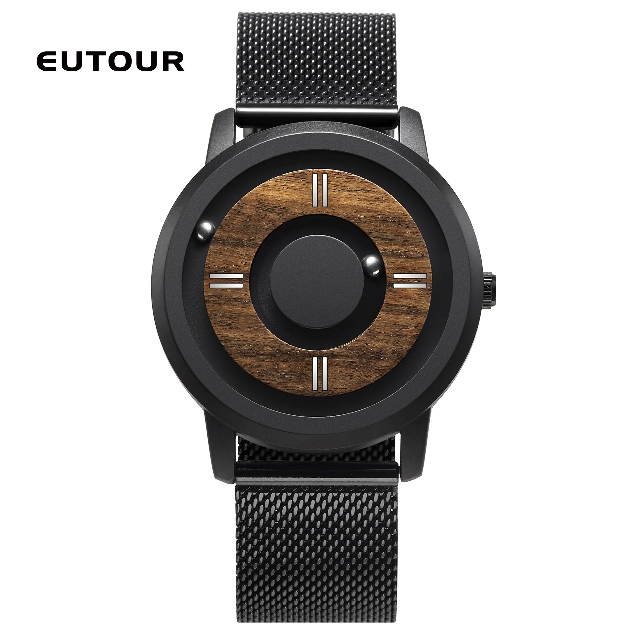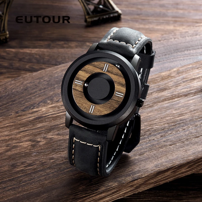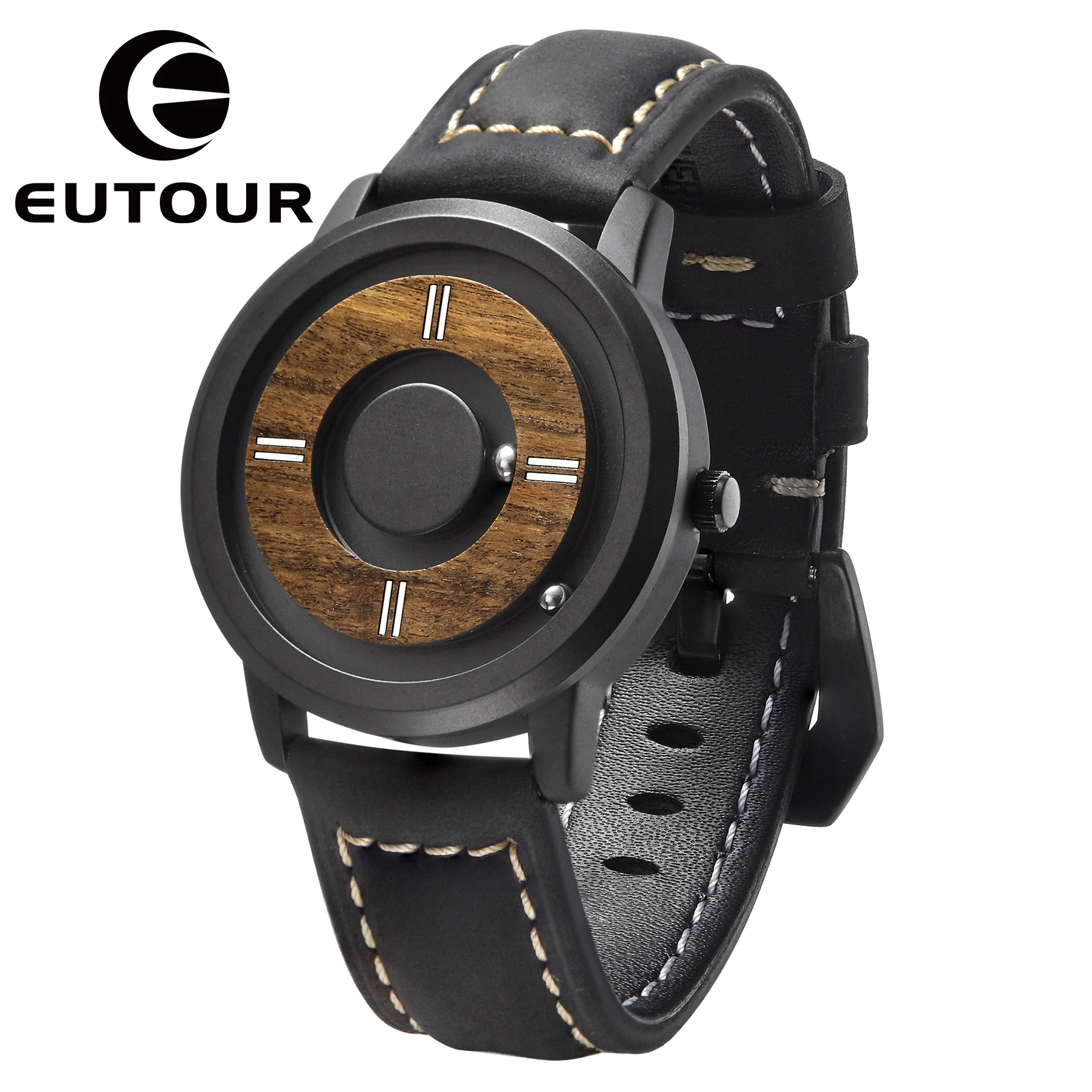 Часы EUTOUR мужские с магнитным шариком и деревянным циферблатом, роскошные брендовые модные повседневные кварцевые простые деловые с кожаным ремешком