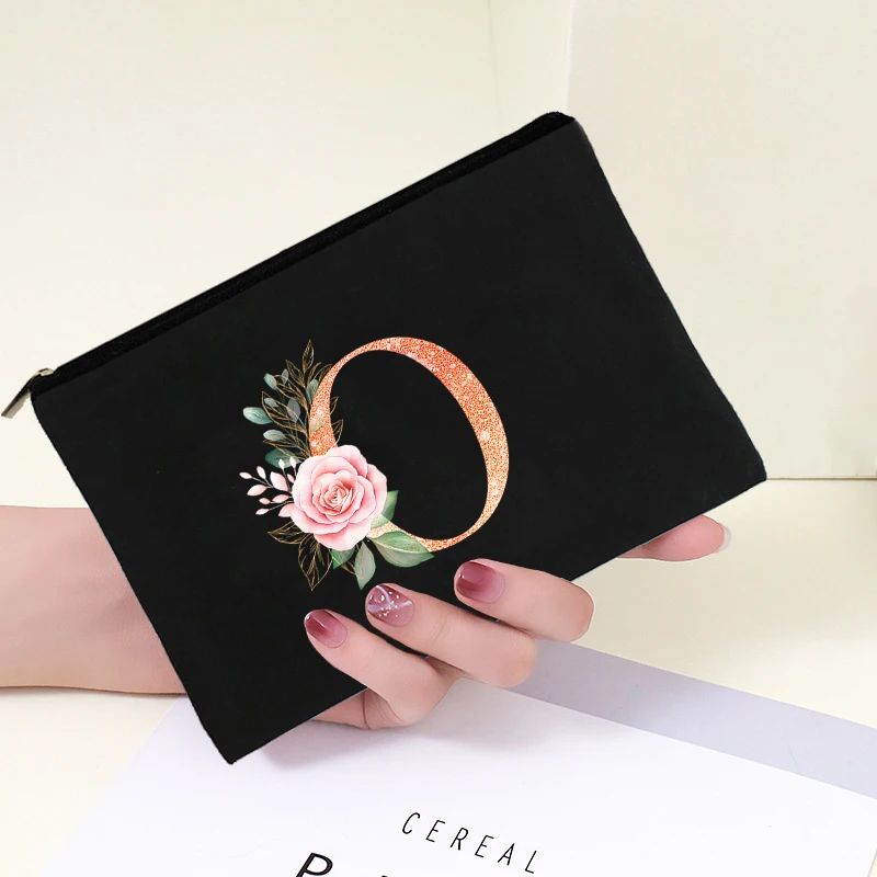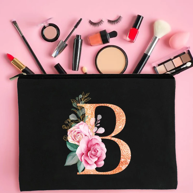 Косметички с цветочным принтом и алфавитом, модные холщовые черные ...