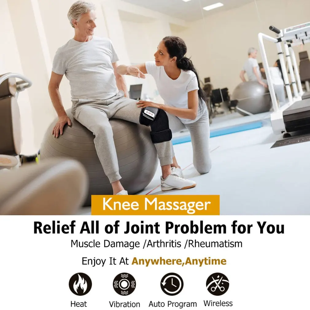 Массажер коленный Электрический с подогревом, устройство для снятия симптомов боли в колене, с инфракрасным излучением, поддержка вибрации, для ног, спины, плеч
