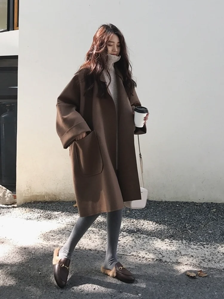 Женское весеннее пальто, новинка 2022, коричневое модное шерстяное пальто в стиле Хепберн, женские корейские темпераментные японские шерстяные пальто средней длины