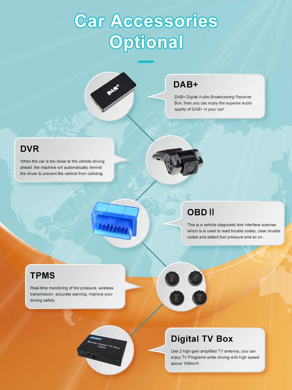 4. Поддержка ТВ: может поддерживать DVB-T2/ISDB-T, с нашим DVB-T2/ISDB-T коробкой и разъемом, вы можете работать на нашем автомобильном DVD экране